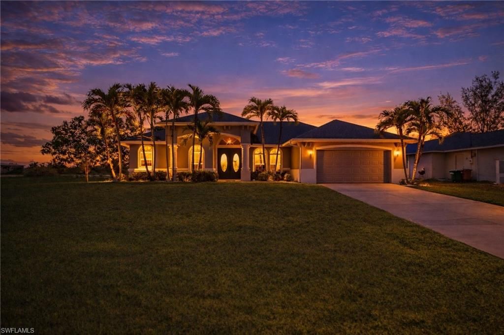 Welcome to this beautifully maintained 3-bedroom plus den custom home, ideally located in the highly desirable Burnt Store Road corridor of Cape Coral. Offering over 2,000 square feet of living space, this home combines comfort, functionality, and the Florida lifestyle all in one. Step inside to an inviting open concept layout featuring a spacious living area and a well-appointed kitchen with breakfast bar seating, sleek Corian countertops, and quality stainless steel appliances. Perfect for bot...Welcome to this beautifully maintained 3-bedroom plus den custom home, ideally located in the highly desirable Burnt Store Road corridor of Cape Coral. Offering over 2,000 square feet of living space, this home combines comfort, functionality, and the Florida lifestyle all in one. Step inside to an inviting open concept layout featuring a spacious living area and a well-appointed kitchen with breakfast bar seating, sleek Corian countertops, and quality stainless steel appliances. Perfect for both everyday living and entertaining. Tile and wood flooring run throughout the home, complemented by ceiling fans for added comfort. The owner's suite is a true retreat, showcasing soaring cathedral ceilings, dual walk-in closets, a relaxing soaking tub, a separate shower, and a dual sink vanity. A versatile den provides the perfect space for a home office, guest room, or flex space to fit your needs. Enjoy indoor and outdoor living with an enclosed lanai that opens to a generous backyard set on a .23 acre lot. The property features mature fruit trees including banana, mango, and avocado, along with plenty of room to add a pool. Major updates provide peace of mind, including a newer roof from 2019, A/C from 2022, water heater from 2022, fresh exterior paint, irrigation system, and hurricane shutters. City water utilities have already been installed, adding even more value. Located in a no HOA area with strong growth potential, this home is just minutes from the upcoming Seven Islands Project, as well as local parks, boat ramps, dining, shopping, and excellent fishing spots. Enjoy easy access to Punta Gorda and Matlacha, with convenient drives to Sarasota, Tampa, and Orlando for day trips.With continued development and increasing demand in the area, this property presents an excellent opportunity for both homeowners and investors. Furnishings are negotiable, allowing for a smooth and flexible transition.
